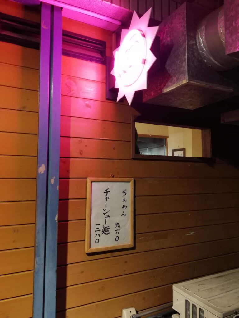 まず、この店の場所について語らねばなるまい。荻窪の路地裏、というよりはむしろ迷路のような細い道を抜けた先に、ひっそりと店は存在するのだ。看板も控えめで、初めての者には見つけにくいかもしれない。写真ではわからんが電光なるとが目印になっている。夜はわかりずらいから注意が必要だ