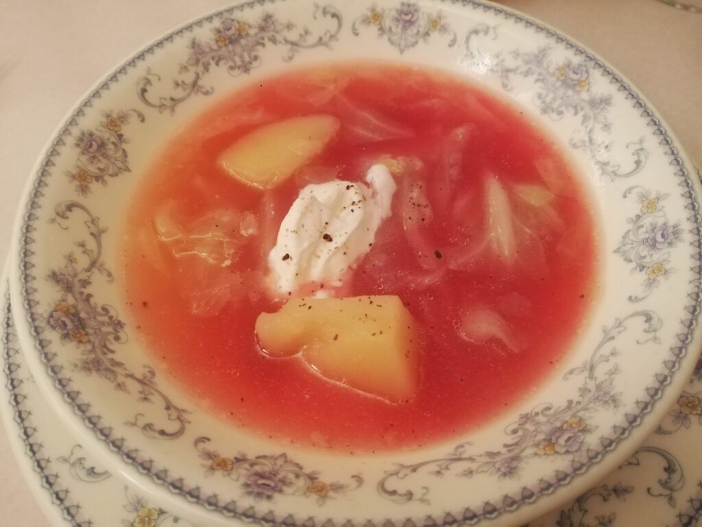 待つことしばし、ボルシチが運ばれてきた。真っ赤なスープに、サワークリームが浮かんでいる。スプーンで一口すすると、かすかに酸味がある。マロン君が「ボルシチの酸味は、ビーツの甘みと乳酸菌の酸味の調和が素晴らしいんだ」と力説するが、吾輩はただ静かに、この「赤いスープ」の奥深さを噛み締めていた。