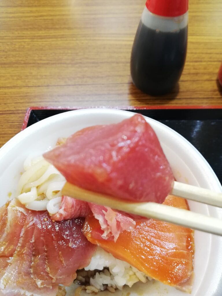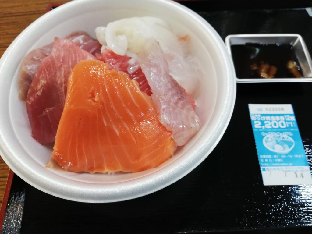 この市場は昭和40年代に開設され、青森の台所として地元民に愛され続けてきた。特に「のっけ丼」というシステムが観光客に大人気で、最初に食事券(約2000円分)を購入し、市場内の各店舗を回って好きな海鮮ネタを選んでもらい、最終的にオリジナル海鮮丼を作り上げるというユニークなスタイルが売りだ。