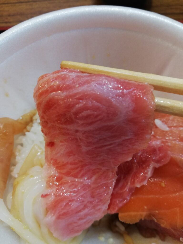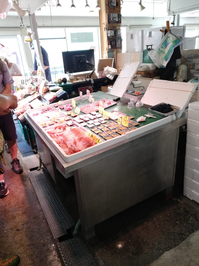 最初に向かったのはマグロ専門店。「大間のマグロはないの?」と主人が尋ねると、「今日は本マグロの中トロがありますよ!」との返事。
