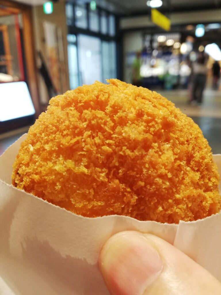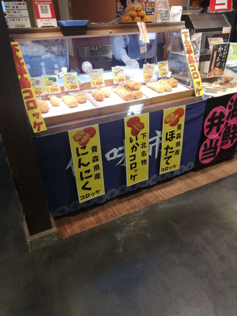 青森駅に戻り、お土産物色タイム。駅構内で見つけたのは「青森名物にんにくコロッケ」