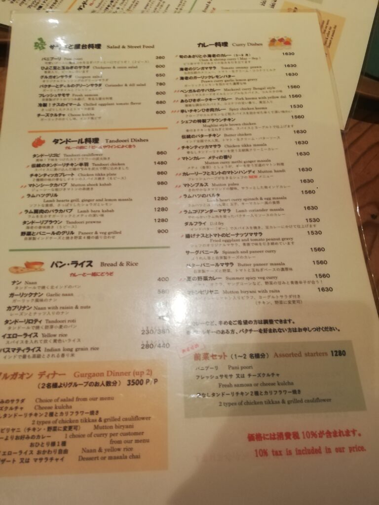 夜の6時、幸いにも待ち人はいなかった。吾輩は一人、いや一頭で来たのだと胸を張って入店する。すると、インド人らしきスタッフが駆け寄り、テーブルを引いて席へと案内してくれた。実にスマートな接客である。好感が持てる。