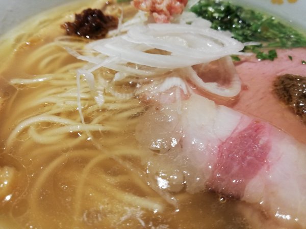 吾輩は静かに考察する。 確かに旨い。猛烈な蛤の旨味が、動物系(鴨や豚)のコクの下支えを得て、舌の上でビッグバンを起こしている。そこへ「ポルチーニ茸のデュクセル」や「黒トリュフオイル」が溶け出すことで、和の出汁が一気にフレンチのスープへと変貌を遂げる。さらに、アクセントとして散らされたピスタチオやインカベリーのソースが、味覚の迷路へと誘う。 トリュフとハマグリが織りなす香りの三重奏は、この一杯が「ラーメン」という下賤な出自から脱却しようともがく、向上心のメタファーだ。本来、中華そばとは労働者の塩分補給であったはずが、ここではブルジョワジーの嗜好品へと昇華されている。