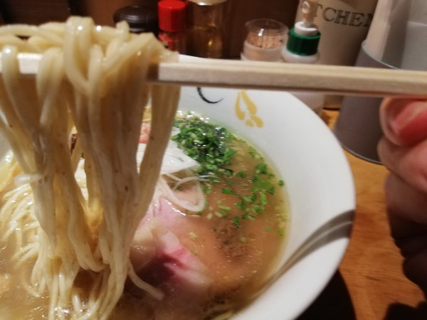 店内は、ラーメン屋というよりは割烹、あるいは隠れ家的なバーのようだ。カウンターの白木が眩しい。厨房では、白い調理服に身を包んだ職人たちが、外科手術のような精密さで麺を扱っている。