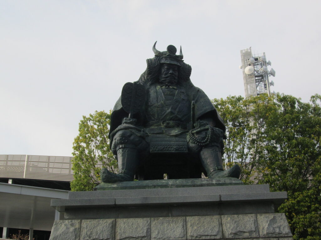 甲府駅に降り立つと、そこには甲斐の虎、武田信玄公の巨大な銅像が鎮座していた。