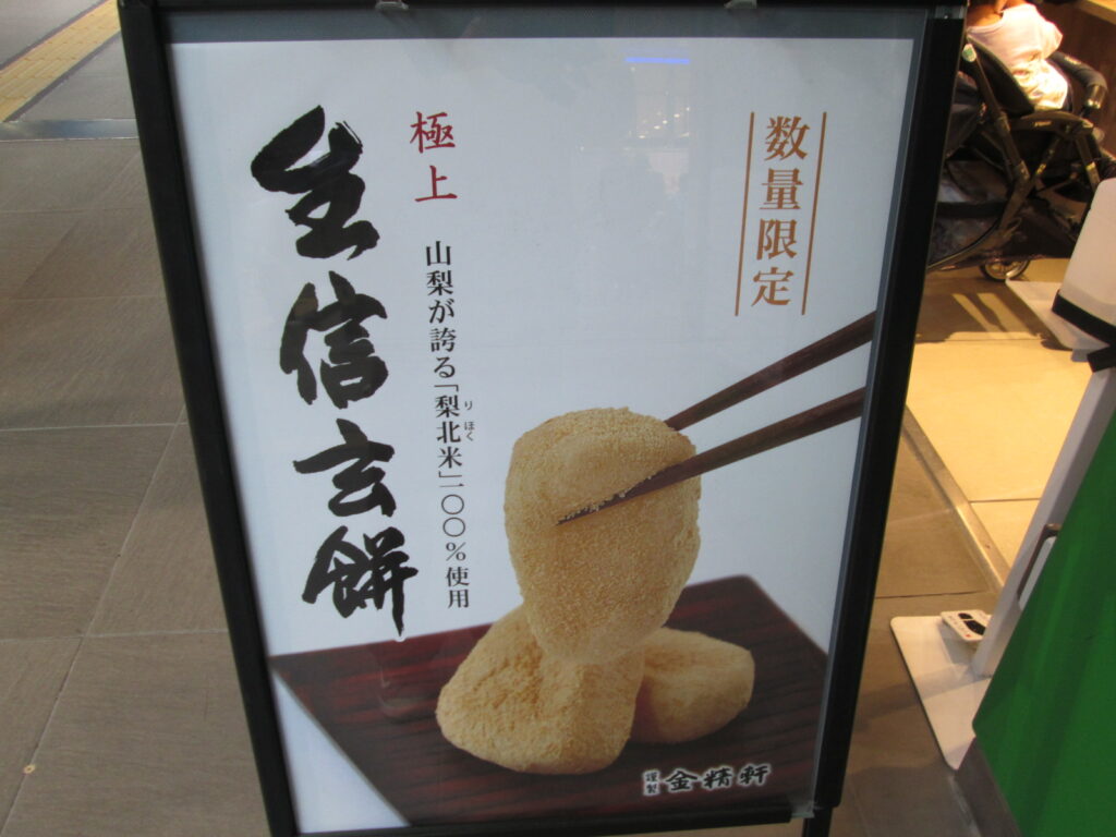 店を出ると、冷たい風が心地よく感じる。体内には味噌という名の暖房器具が設置されたようだ。 さて、甲府に来たからには、甘味という名のデザートも忘れてはならない。 駅のビル、セレオ甲府へ向かい、「桔梗屋」のショップへ。