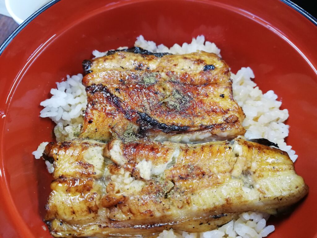 焦がし醤油の甘い香りが、漆黒のタレに濡れた鰻が、白く熱いご飯の上に横たわっている。