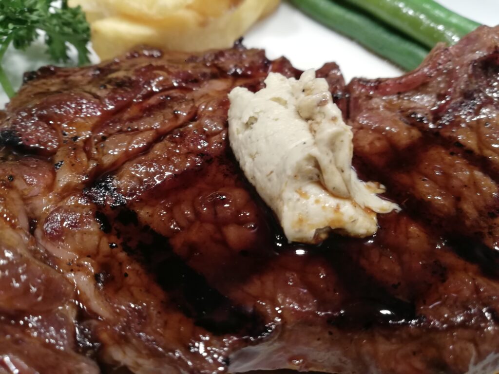 付け合わせのジャガイモとインゲンが、この肉の哲学をさらに強調する。肉という「ハレ」の食材に、ジャガイモという「ケ」の食材が添えられることで、このステーキは完全に**「日常食」へと変貌している。この一皿は、「人間は生きるために、毎日、僅かな贅沢を必要とする動物である」**という、人類の根源的な弱さを証明しているのだ。