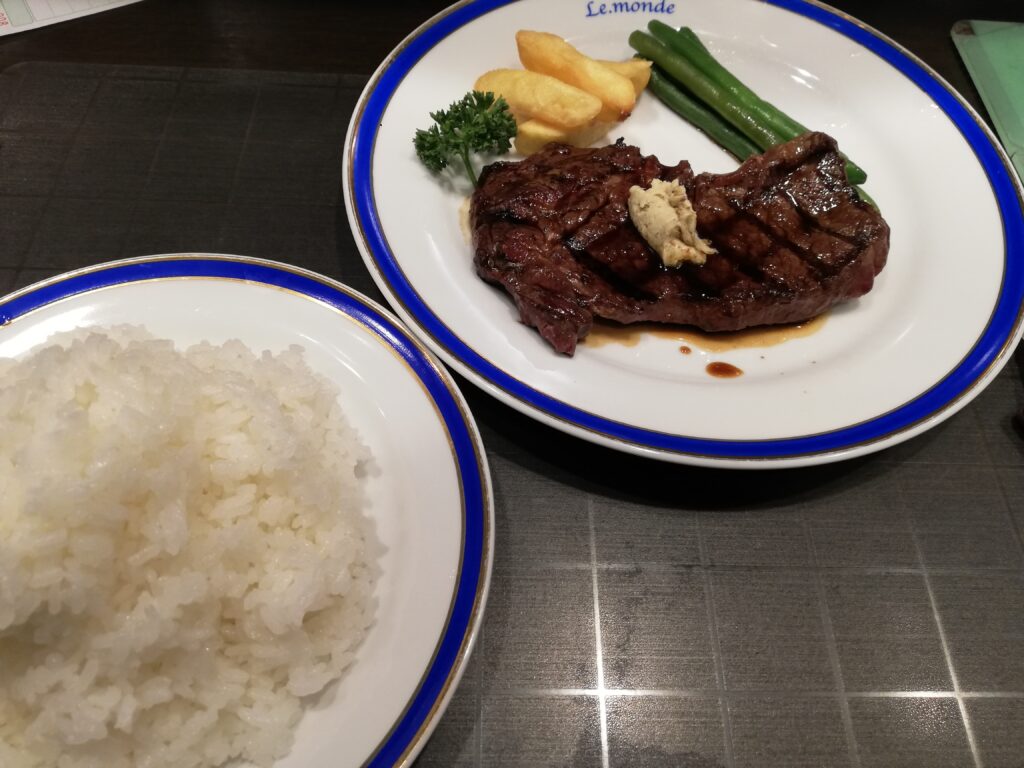 古来より、ステーキ、すなわち牛の肉は、高貴な食卓、成功者の報酬として扱われてきた。それは時間と空間の贅沢を伴い、貧しき者には手が届かない**「ハレの日の特権」**だった。しかし、この店が始めたのは、その特権階級の肉を、**手の届く安価な価格(¥1900)で提供すること。まるで、高貴な食材を大衆に解放する「贅沢の民主化」**運動のようだ。