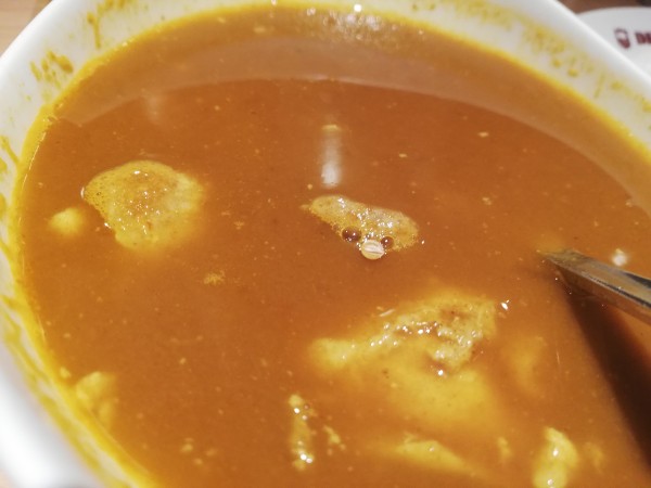 (吾輩の脳内変換):カシミールカレーの底に、実は至高の豚骨魚介スープが隠されていないか、我々は今、確認せねばならない。カレー粉は、単なる麺を隠すためのカモフラージュではないか!