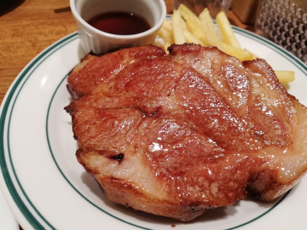 この厚み、この色艶。そして、このジューシーな香りああ、これは幸せですわ。仕事のストレスなんて、この肉の前では塵芥に等しいですわね