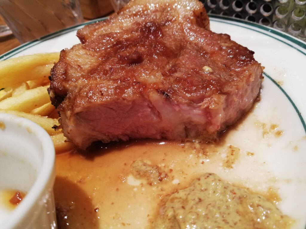 コンクリートの寒さも、仕事の憂鬱も、この厚切りの豚肉と熱いコンソメスープの前に霧散していく。スープの滋味もまた、冷えた胃壁に優しく染み渡る。