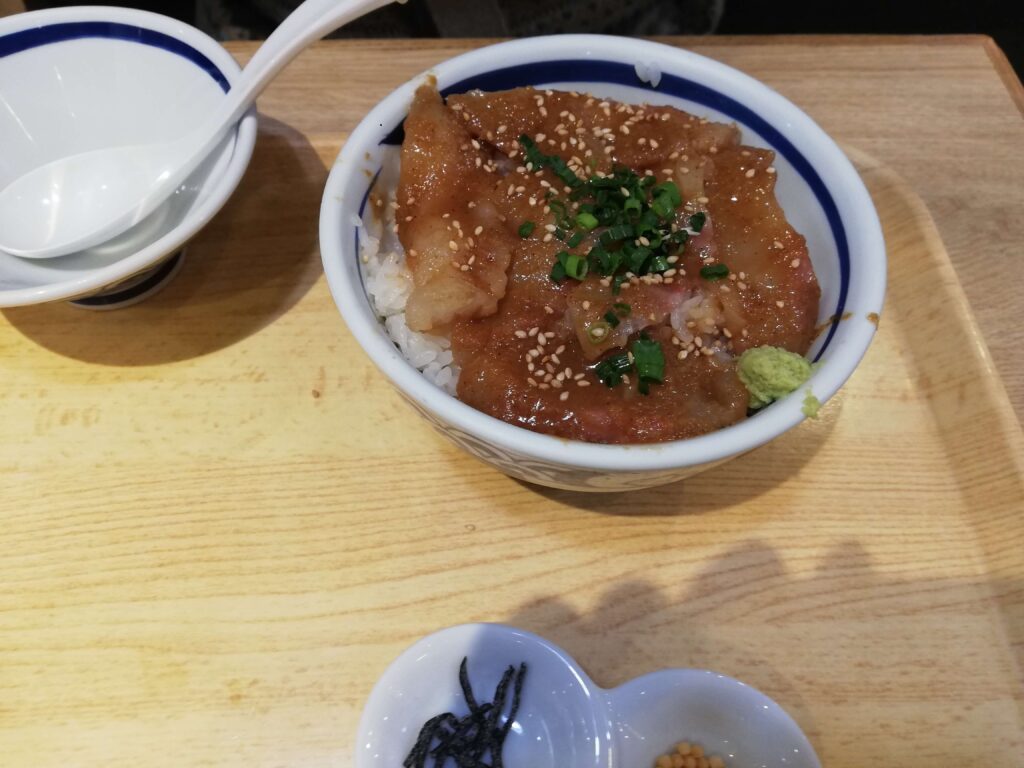 payaは『鯛ゴマ丼(¥1200)』。 吾輩は『サバゴマダレ丼(¥1090)』。 どちらも、迷うことなくライス大盛を召喚した。