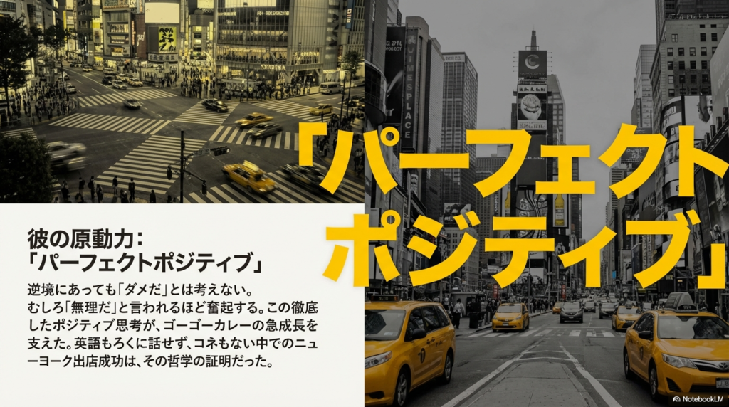 また、「日本カレー協議会」の立ち上げも、パーフェクトポジティブの実践である。通常、ビジネスの世界では競合他社は敵である。しかし宮森氏は違う。競争ではなく協力によって、日本のカレー文化全体を盛り上げようとする。これは、業界全体をポジティブに変えようという姿勢である。