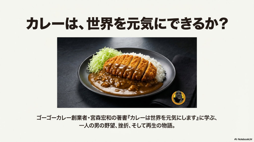 この本は、カレーの本ではない。もちろん、カレーについての話は豊富に語られている。ゴーゴーカレーの誕生、金沢カレーブーム、世界展開。しかし、それらはすべて手段なのだ。目的は、「世界を元気にすること」である。