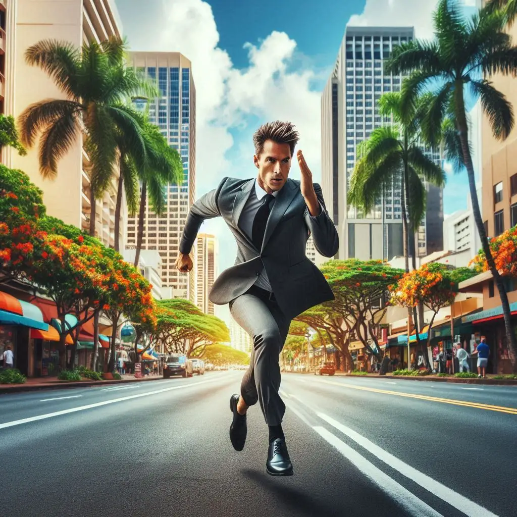 地元の人々は、夜のホノルルの市街地をスーツ姿で全力疾走する東洋人を何だコイツは??という奇異な目で見ていた。ハワイの街角に、突如として現れたシュールな光景である。さすがの吾輩も失笑を禁じえなかったが、主人の判断は正しいとも思った。