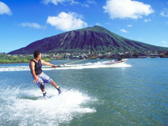 ある日、ご主人はウェイクボードを体験することにした。