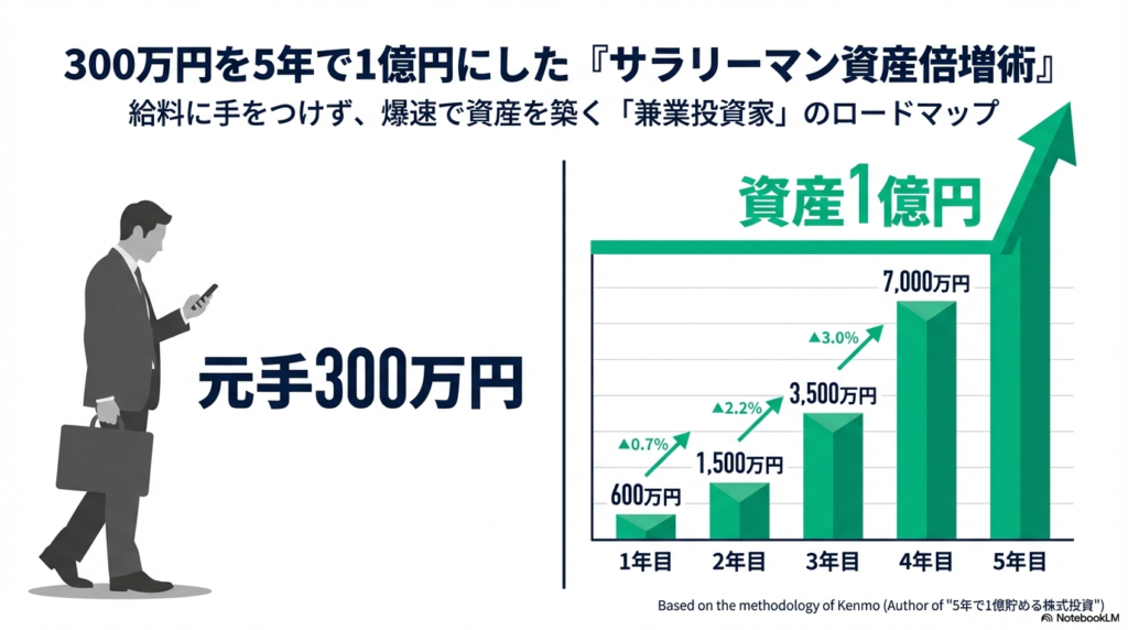 さて、ここからが本題である。kenmo氏が元手300万円を5年で1億円に増やした、その具体的な方法論を見ていこう。