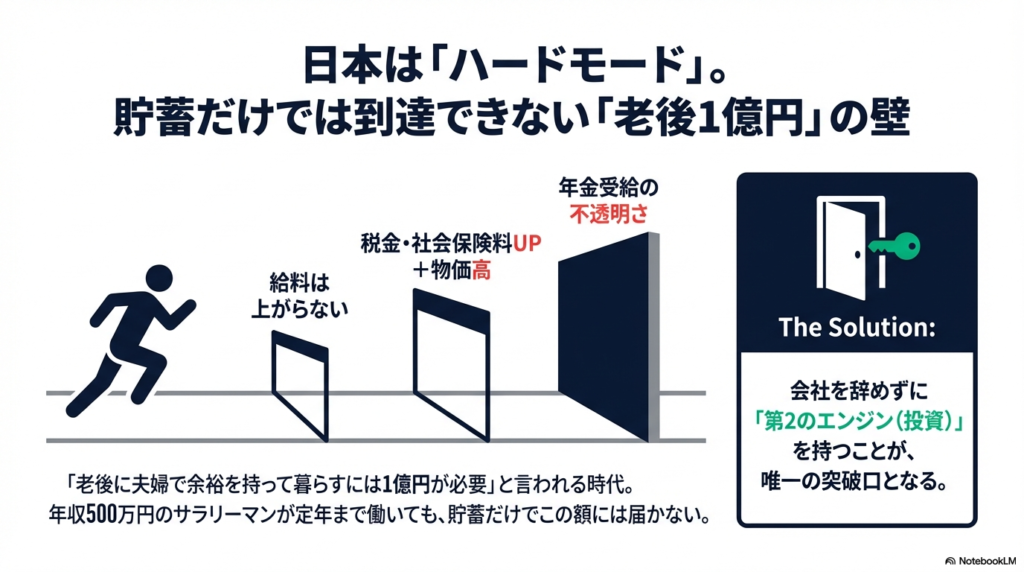 - 老後資金1億円に不安を感じる30-50代 – 年金だけでは生活できない時代、自力で資産を築く具体的方法を知りたい