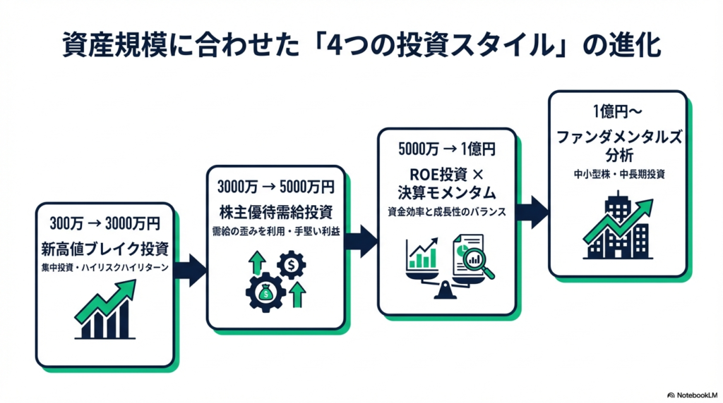 ここで重要なのは、資産額によって戦略を変えることである。